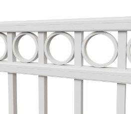 Decorative Circles are positioned and then locked between the top two horizontal rails and the vertical pickets of a three-rail fence. Fence sections come factory-assembled with circles, which alters the spacing of the top two horizontal rails, and therefore must be specified when ordering. Circles are individually cast, which provides for a cleaner paint finish.